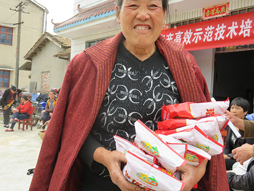 培训现场,农技人员对推广优良品种、多用有机肥、少用化肥和农药、病虫害绿色防控及轻简栽培等水稻绿色高产高效种植技术进行详细讲解,并为参训农民发放优良种子“珞优8号”600多斤和高产高效种植技术资料100多份。