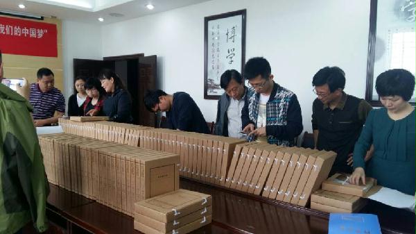 宜昌市调研组一行在当阳市档案局查看了2014年土地确权试点村(河溶镇前进村)农村土地承包经营权确权档案整理情况。
