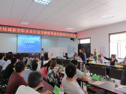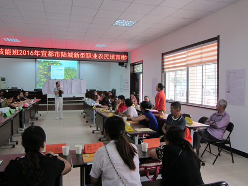 2016年9月19日-25日,陆城办事处在宜都市农广校教室,举办了新型职业农民培育柑桔专业技能班,共有来自全处9个村的50名农民参加了培训。