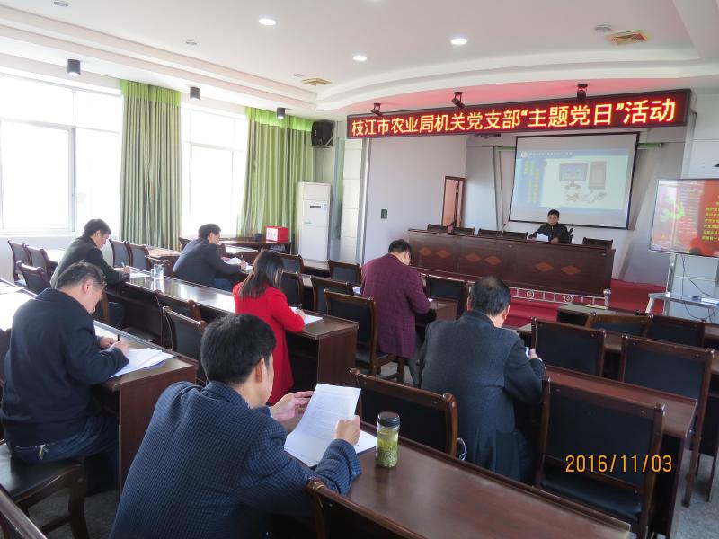 11月3日市农业局机关党支部在六楼会议室开展了“以先烈先进为镜子,向榜样先锋看齐”为主题的“主题党日”活动。