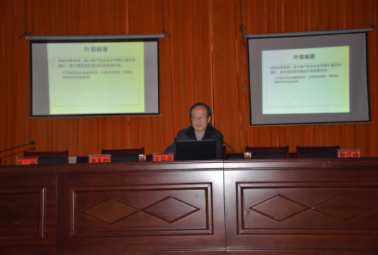 王国平教授作了砂梨主要病害防治的关键技术报告,对梨树的早期落叶、炭疽病、黑斑病、梨锈病、黑星病等常见病害的诊断和预防作了通俗易懂的讲解。