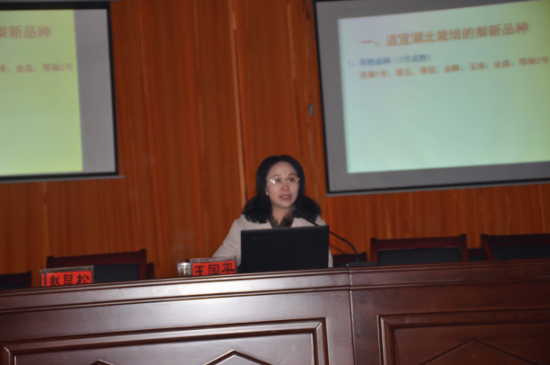 胡红菊研究员对适合湖北发展的砂梨新品种特点作了详细的介绍,特别介绍了苏翠1号、翠玉、翠冠、玉绿、黄金等早、中熟砂梨品种的特点。