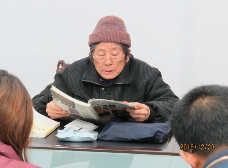会上,84岁的李文英奶奶带领团队成员学习了《习近平总书记系列重要讲话读本》中生态文明建设的部分选节和的23岁的彝族小伙莫色拉且先进事迹,李奶奶勉励工作室成员要向莫色拉且学习,学习他吃苦耐劳、一路追梦、永不放弃的精神。