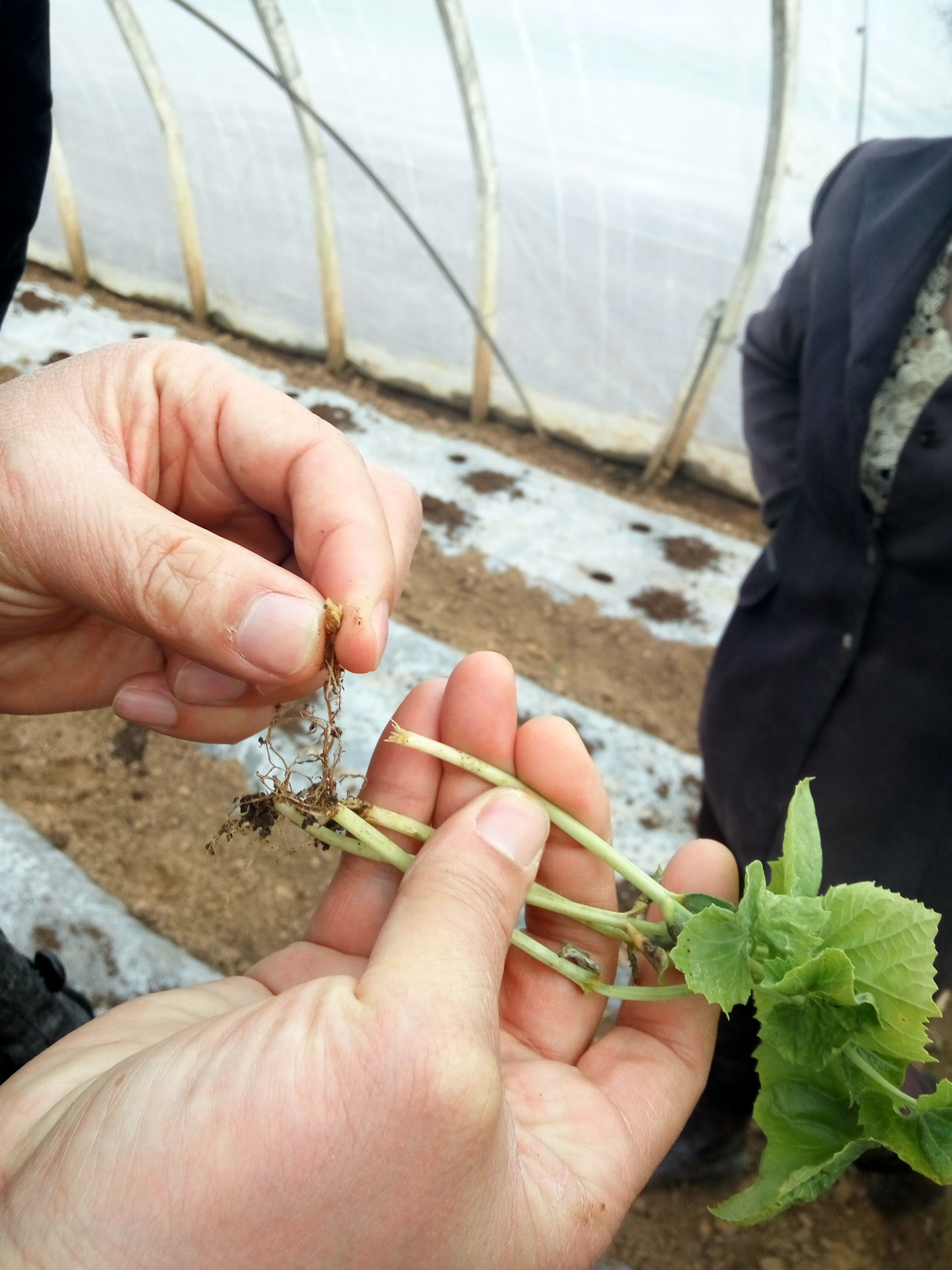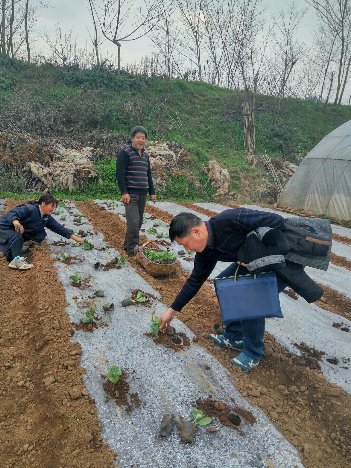 点军城郊蔬菜基地在目前没有征用的情况下仍然要抓好生产管理。当前气温处于“冷尾暖头”阶段,是“一年之计”的重要时间节点。胡站长强调,做好全年规划并及时抓好春播春管对全年的蔬菜生产尤为重要。在菜农郭大远的大棚,胡站长看到正在移栽的苦瓜疑似感染了苗期根腐病,马上强调要选壮苗移栽,减少病苗下田;在菜农官昌芬的大棚内,胡站长强调徒长南瓜苗移栽缓苗后要注意保温并适当控水蹲苗;科技示范户王作珍的田里种植的是白梗芹菜,胡站长称赞她有市场眼光……沿路胡站长逐一察看了每个大棚,每走到一个蔬菜大棚,他都要跟菜农强调当前的一些关键管理技术环节。