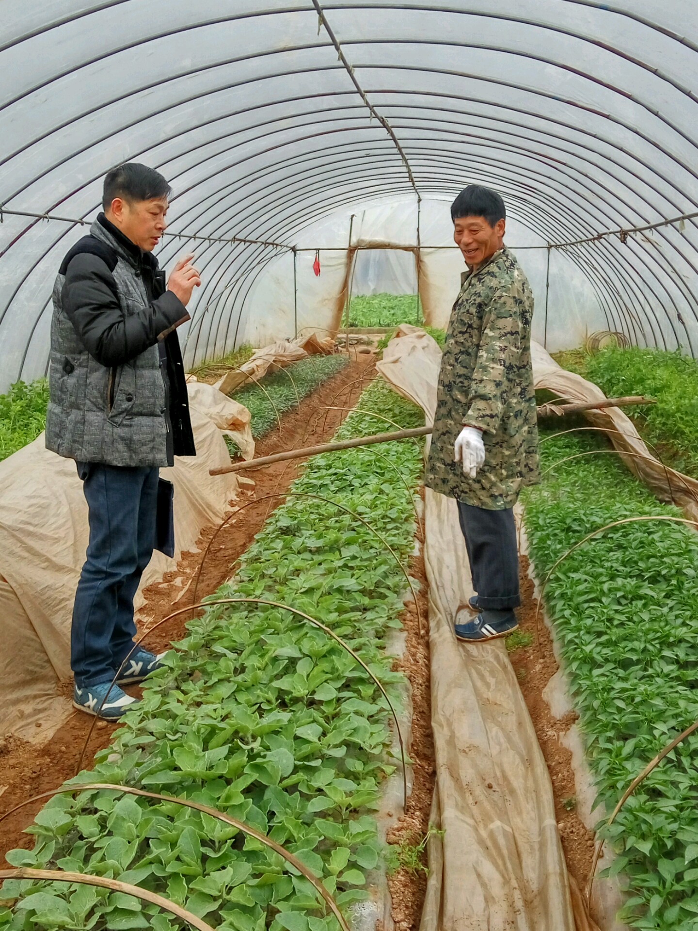 离开大棚前,胡站长又为菜农们强调了当前的大棚蔬菜管理技术要点:一是对于在园蔬菜,主要是大白菜、小白菜、芹菜、生菜、菠菜、花菜、红菜苔、莴苣等,可以上市的要把握好市场时机,早收上市,为下茬蔬菜生产腾出时间和空间。对于还不能上市的要加强管理,做好追肥和覆膜,增温保暖促长。二是对于在园茄果类蔬菜育苗,要抓住晴好天气中午高温时段的管理,加强通风换气排湿、揭膜透光增加光照、盖膜保暖促地温回升、叶面喷肥补水控湿,抓住当前时机,做好大棚内茄果类蔬菜的定植和管理工作。同时要注意天气变化,防止出现极端低温,继续做好保温防冻工作。三是对于黄瓜、西葫芦、菜豆、豇豆等的育苗,在大棚内设置电热温床营养钵早播。播种前做好种子药剂浸种或拌种消毒工作,需要催芽的可采用体温催芽或电热毯催芽,胚根初露即可播种于浇透底水的营养钵中,播后盖土搭硼覆膜,做好温光水气的管理。