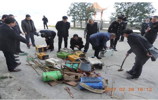 (通讯员 杨晓娟)2月28日下午,县渔政站对2016年来收缴的非法捕捞用具进行集中公开销毁。