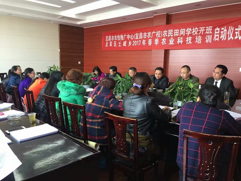 (通讯员 陈玉、向克福、 严羽)3月1日,宜昌市农技推广中心(宜昌市农广校)田间农民学校在土城乡政府会议室举行开班仪式暨土城乡2017年春季农业科技培训启动仪式。宜昌市农技推广中心副主任邓红军、宜昌市农广校副校长田先念、土城乡副乡长黄昌发、土城乡经发办主任彭于强、点军区车溪人家农产品专业合作社农民田间学校校长王兵以及土城乡各村科技主任共20余人出席了开班启动仪式。