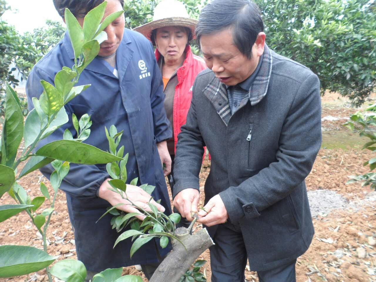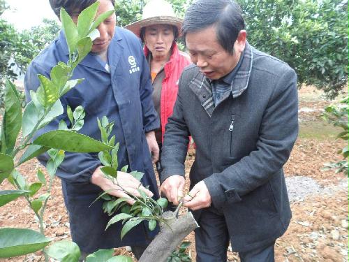 3月1日,枝江市农业局总农艺师肖春梅带领该市农业技术推广中心果树专家来到石匠店村、桂花村现场指导纽荷尔脐橙的换种和新果园的设计规划。