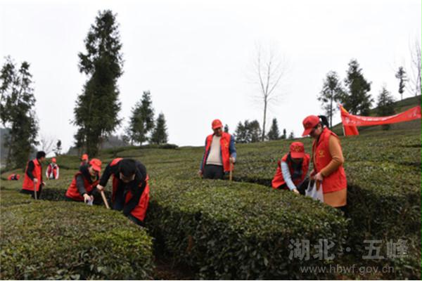活动当天,20多名青年志愿者们在渔洋关镇农业技术服务中心主任陈家宪和农业技术专家郭超富的指导下,分别前往汉马池猕猴桃基地和枚二冲茶园,深入田间地头帮助老百姓除草施肥、整理茶园、布置杀虫板等。