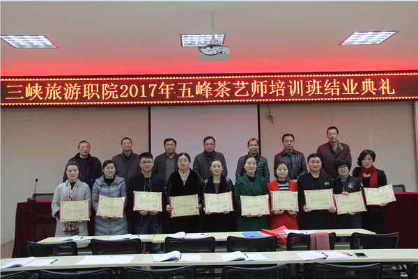 3月12日,五峰首期茶艺培训班结业典礼在三峡旅游职业学院举行。三峡旅游职业学院副院长张耀武、谢军,五峰政协副主席、县茶办主任李平等领导出席典礼并向十位学员颁发了结业证书。