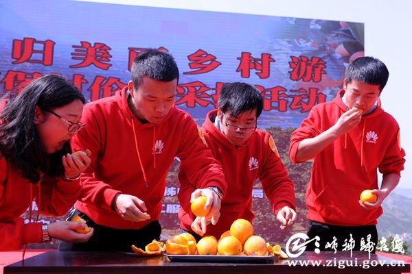 3月26日,秭归县郭家坝镇烟灯堡村游客如织,田间舞台上,演员正在表演节目《敲起琴鼓劲逮逮》,脐橙果园里,游客们采摘橙子也是“劲逮逮”。而香甜化渣、品质优秀的秭归脐橙,更是让游客们赞不绝口。