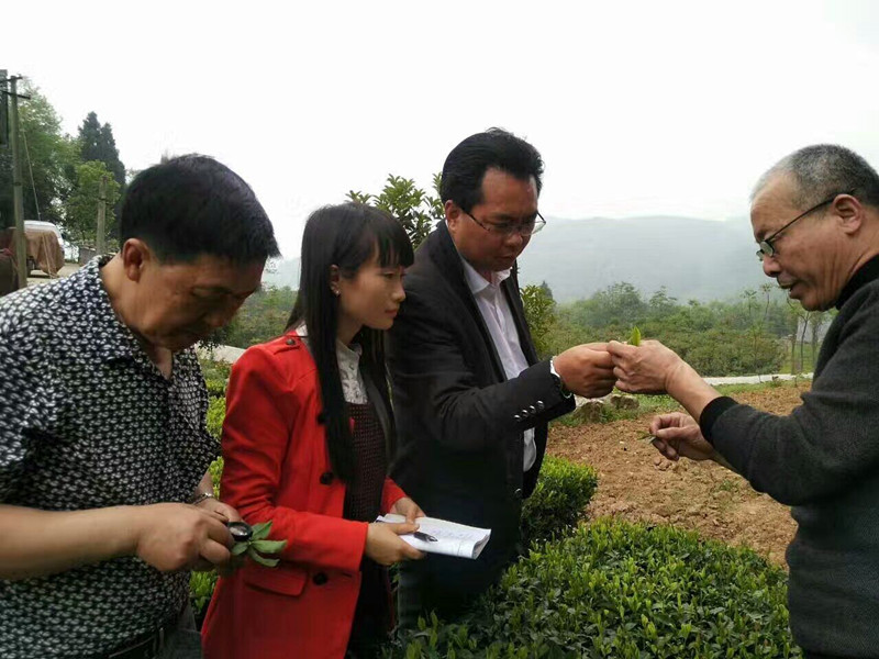 “这里种茶具有得天独厚的优势,可惜几十年来,农民长期施用化肥,土壤有机质已经严重缺乏,根系很难生长,没有健壮的根系,茶叶就不能吸收营养,最后就导致茶叶质量不高、产量下降”。听专家的一席话,社员们才真正明白了当地茶质量和产量不理想的道理。在三岔口村基地,刘教授一行来到社员关云贵的茶园,仔细的观察发现该茶园因枝梢黑点病导致肥料供给不足,芽头弱小,树势弱,专家提出整改措施,春茶结束后重修剪,再进行施肥,加强营养,并手把手指导茶农亲自操作,增强实践操作的能力。专家们的讲解,有效提高了社员实施茶叶标准化生产的积极性和主动性。