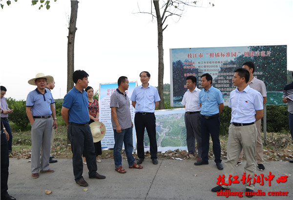 8月3日,枝江市市委书记刘丰雷率队调研柑橘产业供给侧改革工作,市委副书记黄芳帅、市委常委市委办公室主任赵进、人大副主任李奎阳、市政府分管农业副市长姚迎九、政协副主席黄卫民等领导参加调研。
