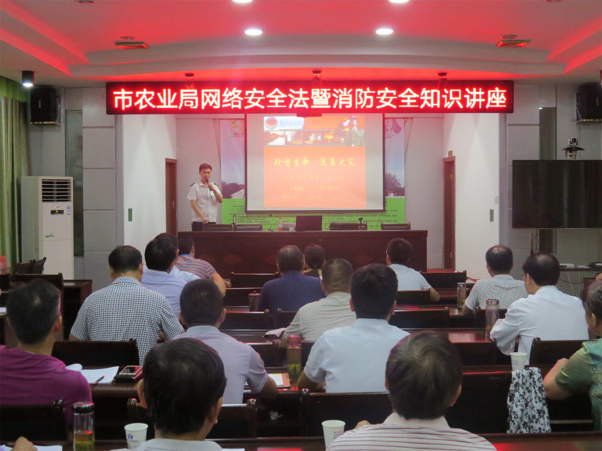 8月24日下午,市农业局特邀枝江市外宣办主任陈永红和宜昌市消防协会及安盾消防吴教官,为我局干职工讲授网络安全法和消防安全知识,农业局系统80余人参加此次培训。
