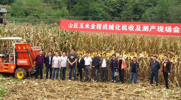 专家组首先观摩了玉米机收现场,对山区玉米推行全程机械化作业给予了充分肯定。山区玉米全程机械化作业不仅省工、省力,而且有效实现了秸秆还田,大幅提高了玉米生产经济效益、生态效益,可实现亩节本增效450元的目标。
