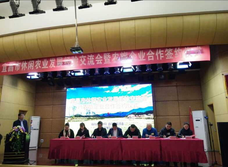 (通讯员陈玉、陈姣)11月13日,宜昌市休闲农业发展成果展示会暨农旅企业合作签约仪式在宜都土老憨培训中心举行。宜昌市副市长黄黎明,宜昌市农业局局长熊长权,宜昌市旅游委副主任吕妮华出席会议并做重要讲话。点军区农林水局副局长刘云军,湖北车溪人家生态农业有限责任公司办公室主任陈姣代表公司董事长李能虎出席会议。