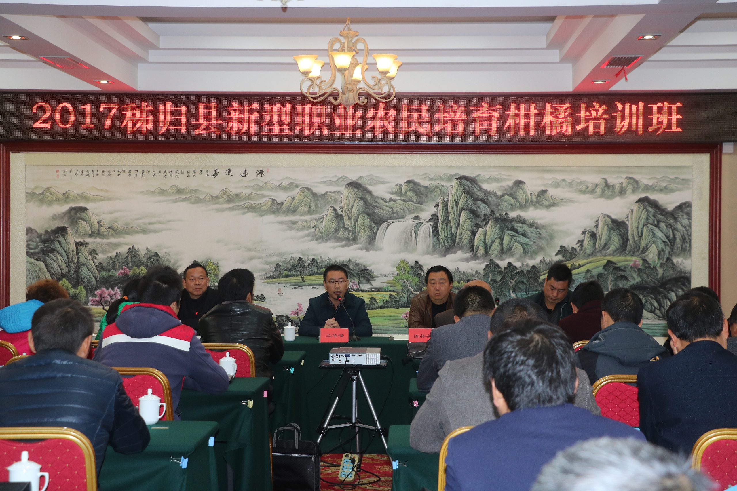 11月18日,秭归县特产中心承办的2017年新型职业农民柑橘培训班在县城长林酒店按时开班,县农业局党组书记、局长兰华锋,农广校校长梅林和沙镇溪镇人大主席陈朴实亲临开班仪式为学员们做动员、鼓干劲。
