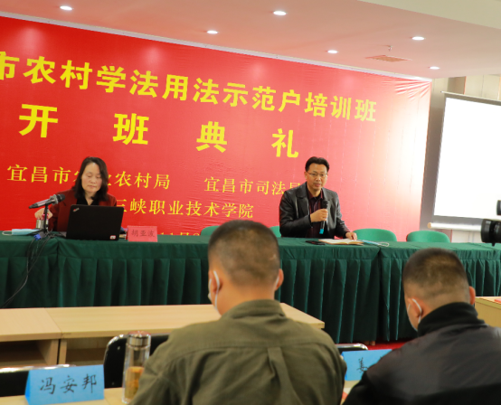 为深入学习贯彻习近平法治思想,完善乡村治理体系,2022年11月24日,宜昌市农村学法用法示范户市级培训班在城区开班。省农业农村厅农产品质量安全监管处三级调研员胡亚波以《新修订的<农产品质量安全法>学习体会》为主题讲授了开班第一课。培训班80名学员、市农业农村局相关科室和相关二级单位负责人参加,市农业农村局党组成员、副局长田雪峰主持宣讲活动。