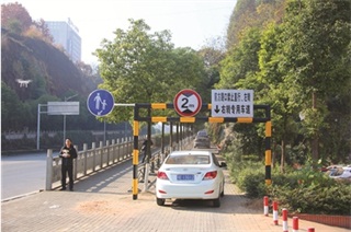 此右转弯专用车道设有限高架,限制高度为2米,仅供小型客车通行,请超限车辆根据道路标识提前选择车道。