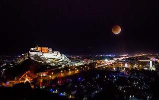 昨晚,“超级蓝血月”景观亮相夜空。超级月亮、蓝月亮、月全食同时出现,为人们献上了一场无与伦比的天文大秀。这种天象上一次发生还是在1866年,距今已152年。图为一轮“红月”高挂拉萨夜空。(中新社)