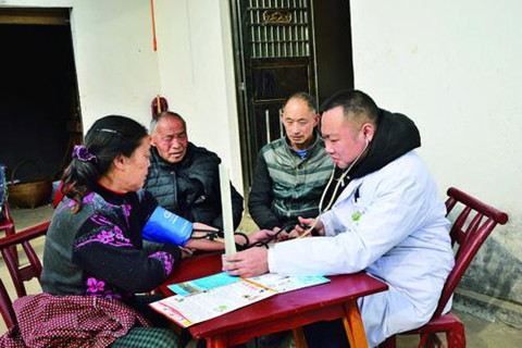 昨日,在宜都市枝城镇余家桥村七组王道益家,村医向安华在为周边群众体检。该村有1700多人与村医签订了家庭医生服务协议,每年至少为他们免费体检4次,并对高血压、糠尿病等慢性病人跟踪服务。(通讯员冉德强)