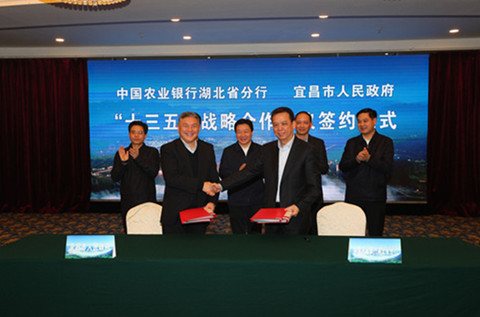 9日,农行湖北省分行与我市签订战略合作协议,“十三五”期间,农行湖北省分行将为我市提供不少于800亿元的意向性信用额度,助力宜昌长江生态大保护,乡村振兴,旅游业发展,企业技术改造、化工产业转型升级和金融扶贫。市委书记周霁出席签约并与农行湖北省分行党委书记、行长陈金焱座谈。(记者雷鹏程)