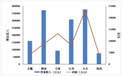 部分地区国家级农业产业化龙头企业的营业收入与利润对比图