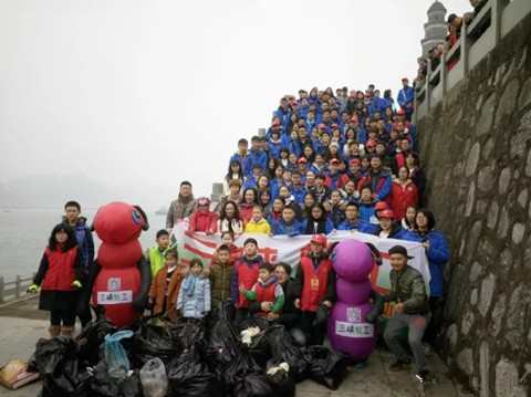 >网友“黎奕liyi峡江情”:(18日)学雷锋志愿者宝贝罗妈和家委会家长组织一中、夷陵中学近百名志愿者学生、全国学雷锋志愿服务先进个人曹国政、全国志愿助残阳光使者陈实及三峡蚁工志愿者一道来到宝塔河江边清理河道垃圾(图)。