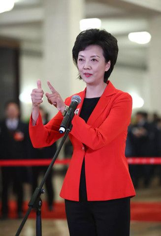 演员张凯丽表示,文艺工作者在舞台上无论演什么角色,生活中都要做一个好人,一个时刻充满正能量的人。(新华社)