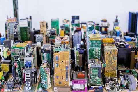 ◆小伙用电脑配件搭起一座城市