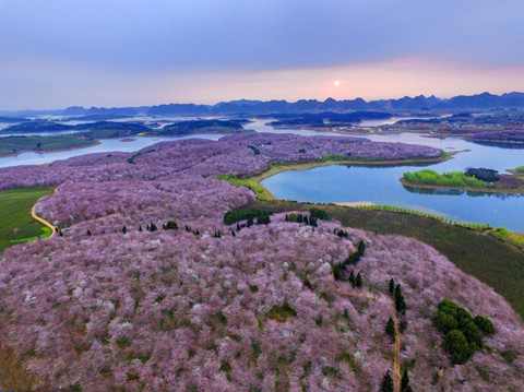 近日,贵州省贵安新区原平坝农场樱花园万亩樱花开放,高空俯瞰十分壮观。据悉,园内种植的樱花分为早樱和晚樱,赏花时间从三月初一直持续至四月上旬。(中新网)