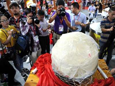 昨日,第四届中国(福州)鱼丸节举行,一个巨型鱼丸以256.6斤的重量、66.8厘米的直径,经英国世界纪录认证机构(WRCA)审核,成为世界最大的包心鱼丸。(中新网)