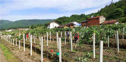 近日,远安嫘祖镇望家村猕猴桃基地里,连片猕猴桃长势喜人,10余名当地群众正在基地里对猕猴桃进行技术管理,一番欣欣向荣的景象跃然眼中。(通讯员陈亚芸)
