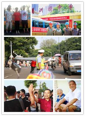 今天为高考第一天,我市交警、电力、出租车公司等部门全力出动,为2万余名考生保驾护航;家长、老师为学子们加油打气。