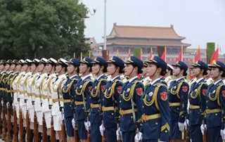 昨日下午,新改革的国事访问欢迎仪式首次启用,三军仪仗队中增加女兵方阵。(人民网)
