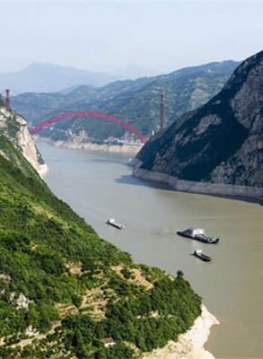 昨日,船舶行驶在长江三峡西陵峡水域,水位下降后的消落带清晰可见。三峡水库坝前水位昨消落至约145米,释放防洪库容近220亿立方米,标志着三峡水库腾库防汛工作基本完成。(新华网)