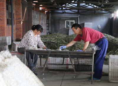 近日,宜都高坝洲镇皓光村蚕站集中收购蚕茧,蚕农们忙着筛选、加工。近几年,该村积极围绕桑蚕产业谋发展,并带动农家休闲观光旅游,拓宽桑农增收渠道。今年五一期间,该村接待游客2000余人次,为桑农增收10多万元。(通讯员朱琳)