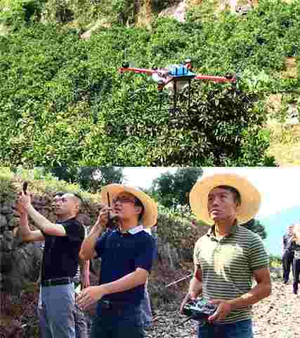 近日,兴山县南阳镇阳泉村使用植保无人机,进行柑橘大实蝇防治。在工作人员的操作下,不到十分钟就完成10亩地的打药任务。据介绍,无人机可提高工作效率30-40倍,减少用药10%-30%,减少用水90%,一天的作业量可达800亩,整个过程遥控操作,对人员无害,既高效,又安全环保。(通讯员向杰、李勇、李祥东)
