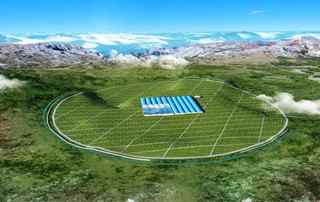昨日,中国重大科技基础设施高海拔宇宙线观测站在四川甘孜州稻城县开工建设。该项目建成后将跻身世界四大宇宙线研究中心之列,稻城也将成为重要的大天文观测集群地。图为效果图。(中新网)
