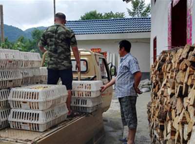 22日,兴山县古夫镇咸水村贫困户焦成家在家门口,领到了该镇畜牧兽医服务中心送来的1000只双莲鸡苗,当天该镇咸水、龙池、深渡三个村的24户贫困户共领到3510只鸡苗。该镇将在8月底前,将3万多只鸡苗发放到281户贫困户手中。(通讯员袁裕树)