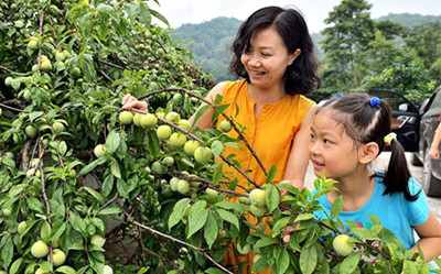 1日,游客在宜都市枝城镇架锅山村采摘巫山李子。今年雨水丰润,李子丰收,分布在全村100多户村民房前屋后的李子树挂满了李子,预计产量在5万公斤以上。(通讯员冉德强)