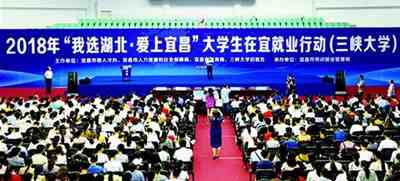 近日,2018年“我选湖北-爱上宜昌”大学生在宜就业行动在三峡大学体育馆启幕。现场开展了全市2018年暑期实习实训对接,760家企事业单位,带着医学、行政、营销、金融、土木工程、畜牧、社会学、新媒体等实习实训岗位10094个现场引才,部分企业还承诺支付3000元以上的实习工资。(记者郑岚)