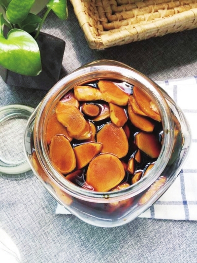 醋泡姜的制作方法很简单,购买大约半斤姜,切成片后放在洗净的瓶中,然后倒入米醋使其没过生姜,浸泡三天就可以吃了。