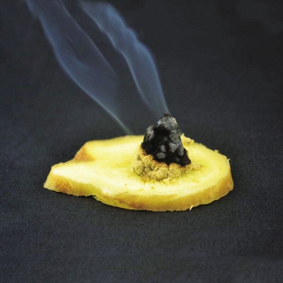 制作方法是:取生姜一块,切成厚约0.3厘米(约一元钱硬币厚)的姜片,姜片大小可据穴位所在部位的面积和选用艾