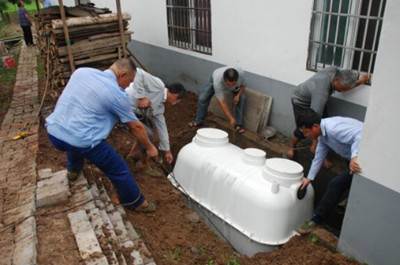昨日,枝江市仙女镇九龙村三组村民周其美家正在安装三格化粪池。该镇斥资30万采购了400个三格化粪池用于农户改厕。今年,该镇计划新建集镇公厕2所,村级公厕22座,农村厕所无害化处理1430户。(记者熊东华)
