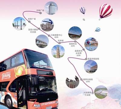 今天开始,宜昌城市旅游观光巴士将于每周二至周日早上9:00均瑶广场发车,带大家尽情领略城市风光。新路线途经:均瑶广场、滨江公园双亭广场、宜昌大撤退纪念园(游览)、三峡游客中心、天然塔(游览)、宜昌东站、宜昌欢乐水世界、宜昌市规划馆(游览)、猇亭古战场、兴发猇亭工业园(游览)。票价:20元/人,公交卡15元/人。(记者王莹)