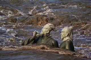昨日,四川宜宾迎近年来最大洪峰,金沙江宜宾段水位达16.25米,宜宾滨江公园里的苏轼与黄庭坚雕塑逐渐被淹,仅有头部露出水面,最后完全被江水淹没。网友戏称二人携手看风起云涌、大江东流。(搜狐)