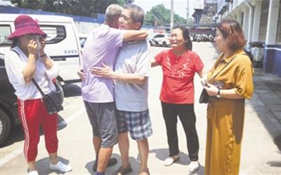 亲兄弟幼年分别,因为家庭变故,一晃60年未见。7月22日,将近70岁的哥哥曹爷爷从老河口带着亲人到宜寻亲,在平湖公安分局镇镜山派出所里,这对失散60年的兄弟紧紧拥抱,老泪纵横。(记者王晶晶)