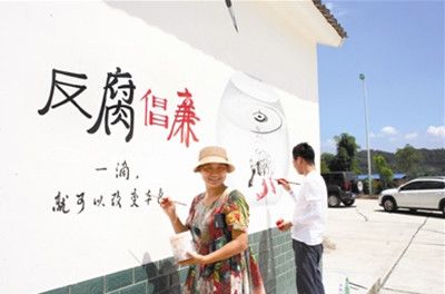 昨天,点军区土城乡安梓溪村易地扶贫集中安置点,来自三峡大学艺术系专业的师生,趁着暑期送上“廉政大餐”,文化墙以简单明朗的图画、寓意深刻的警句,成为一道靓丽的风景线。(记者黄翔)