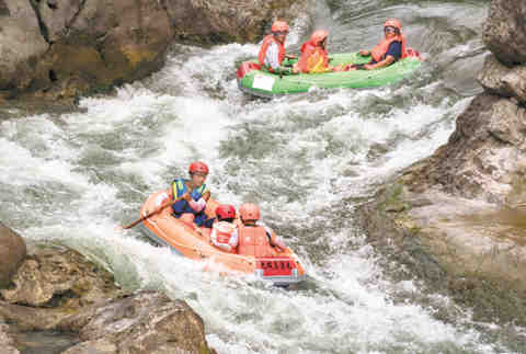 26日,九畹溪水上冲关欢乐嘉年华活动盛大启幕,近2000名游客快乐相聚。据悉,九畹溪漂流融入抖音和趣味游戏元素成为三峡旅游一大亮点,九畹溪漂流景区也成为旅游市场爆款产品。(新华社)